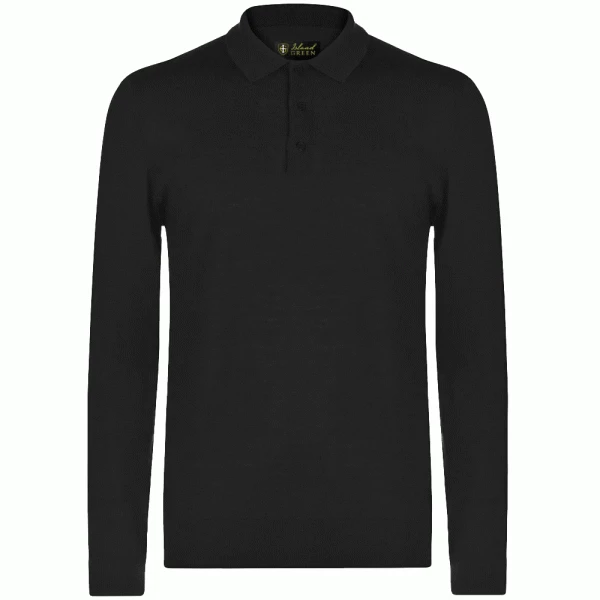 ISLAND GREEN SUPERSOFT FINE KNIT BUTTON NECK GOLF JUMPER – BLACK